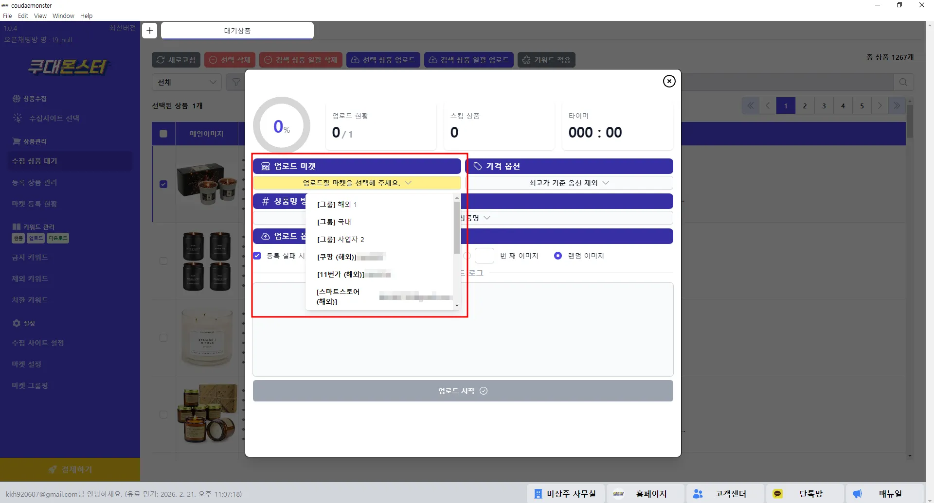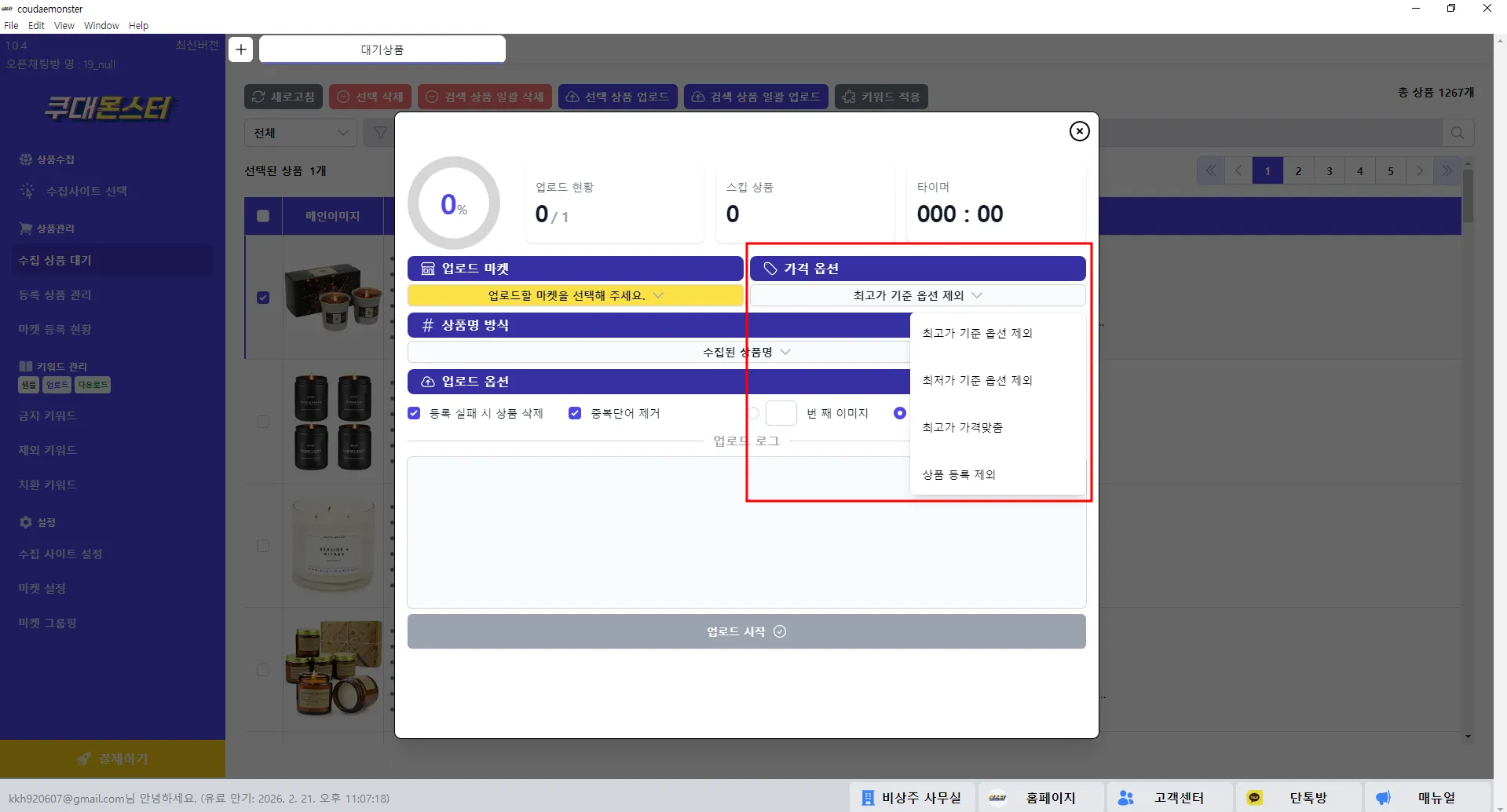 각 마켓별 옵션가 규정이 다르기 때문에 업로드 되지 않는 상품이 발생할 수 있습니다.