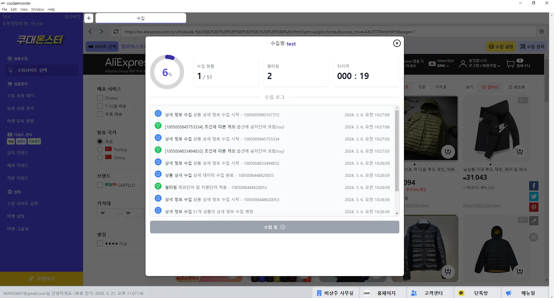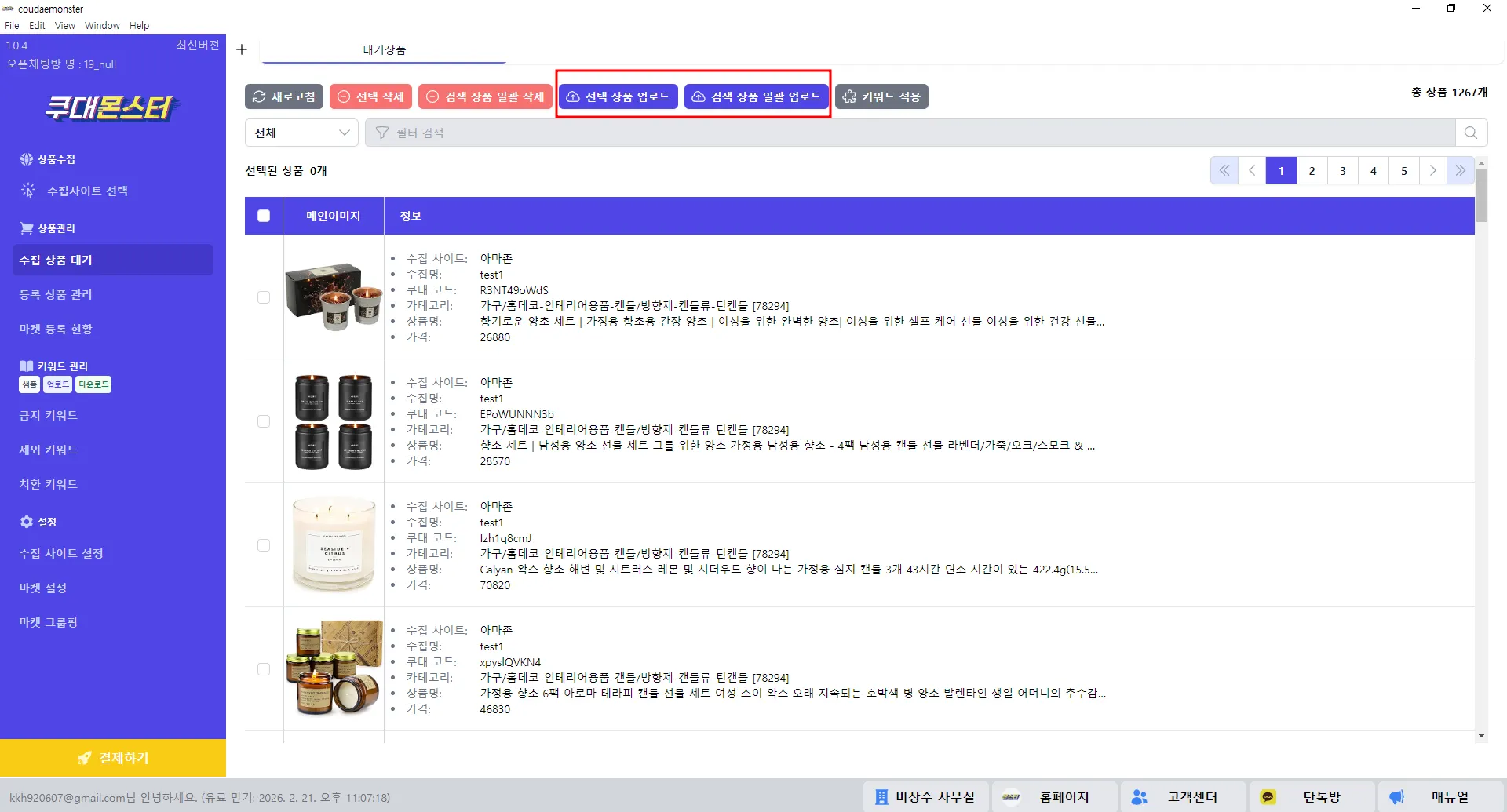 수집 상품 대기 → 검색 or 상품 선택 → 선택 상품 업로드/ 검색 상품 일괄 업로드