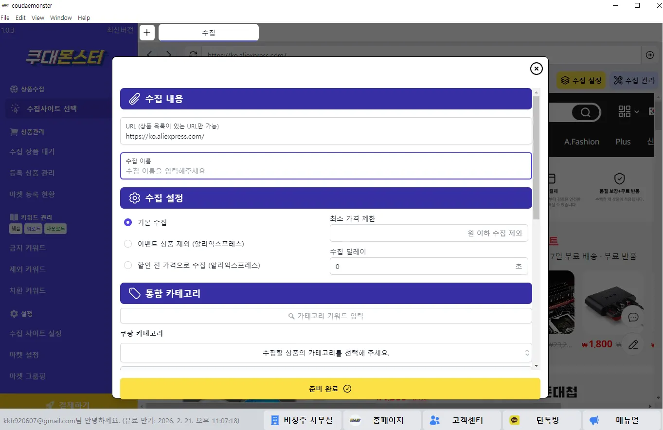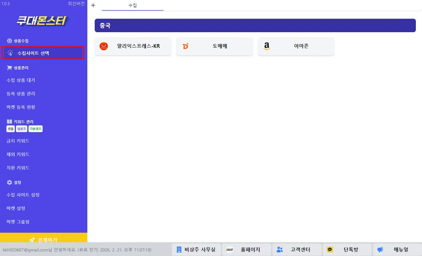 설정→ ‘수집사이트 설정’ 에 저장된 값을 가져옵니다. 변경 할 경우 이번 수집 건에 한하여 변경하여 수집됩니다.
